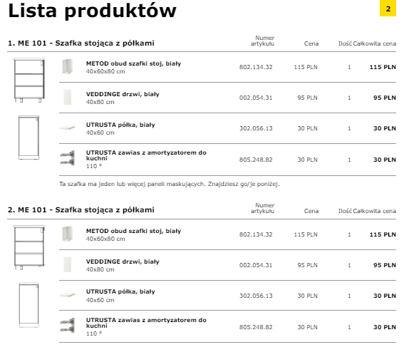 Jeżeli jakieś akcesoria, sprzęty AGD, blaty lub jakiekolwiek elementy będą kupowane spoza IKEA, istotne jest zaznaczenie takiej informacji.